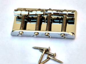CHROME 4 STRING PRECISION BASS GUITAR BRIDGE JAZZ — premium-quality part from Janika.co.uk. A good quality chrome plated electric bass guitar bridge assembly. For 4 string electric bass guitar.