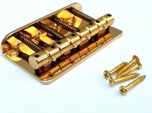 4 STRING GOLD JAZZ BASS GUITAR BRIDGE PRECISION — premium-quality part from Janika.co.uk. A good quality gold electric bass guitar bridge assembly. For 4 string electric bass guitar.