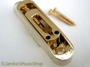 BASS GUITAR MONORAIL BRIDGE SADDLE GOLD SINGLE STRING — premium-quality part from Janika.co.uk. This is a good quality gold plated electric bass saddle assembly for bass guitar.
