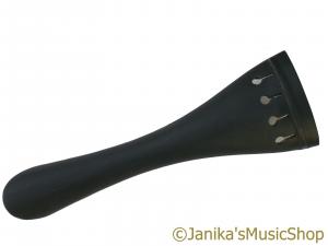 DOUBLE BASS BLACK TAILPIECE 3/4 CONTRABASS — premium-quality part from Janika.co.uk. This is a black stained wooden tailpiece for an upright double bass / contrabass.