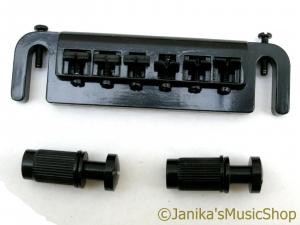 BLACK WRAPAROUND BRIDGE — premium-quality part from Janika.co.uk. A good quality black painted electric guitar one piece hardtail bridge assembly.
