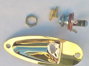 STRATOCASTER JACK SOCKET AND PLATE GOLD ELECTRIC GUITAR — premium-quality part from Janika.co.uk. Gold ST jack socket and boat type plate. Includes screws Designed for reliable daily use, it offers dependable performance and peace of mind for studio, stage and home setups. Compatible with standard fittings where applicable; perfect as a replacement, spare or upgrade for musicians and builders.