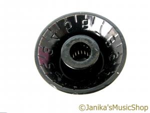 LES PAUL ELECTRIC GUITAR BLACK HAT KNOB — premium-quality part from Janika.co.uk. This is a black plastic knob which is a push on fit on a standard splined shaft potentiometer,