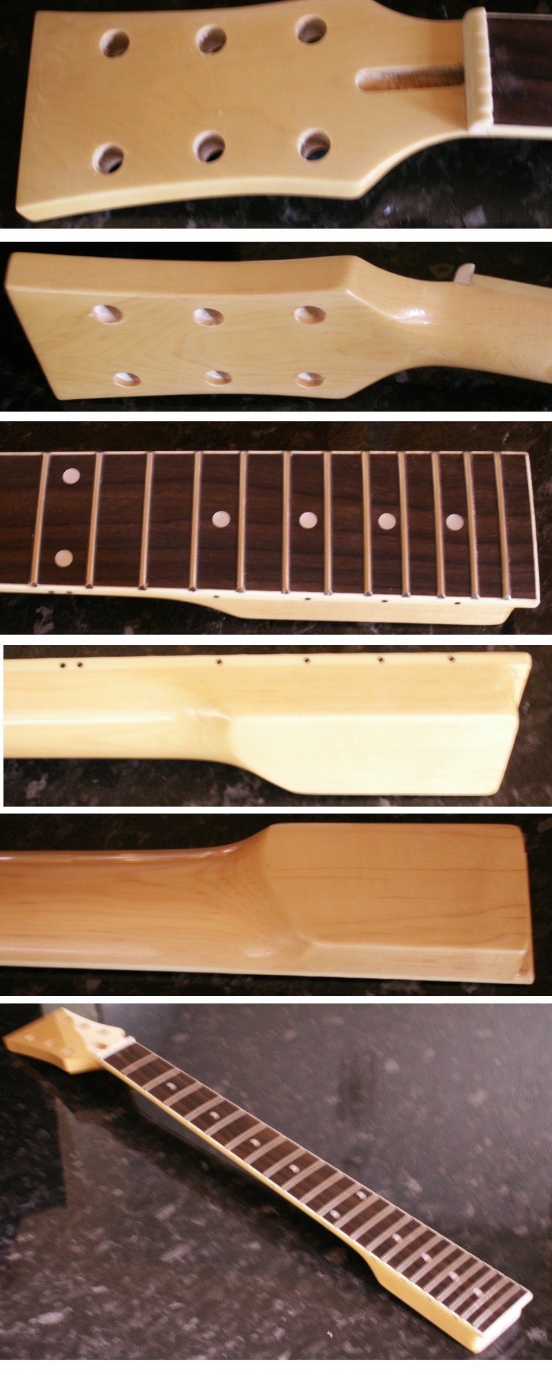 rnThese are maple necks complete with rosewood fretboard, frets, inserts and nut.