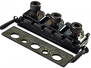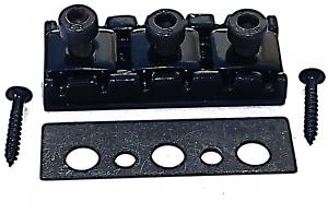 This locking nut lock can be used in place of or behind the guitar end nut and allows the strings to be clamped so the guitar will not go out of tune after string bending or use of tremolo.