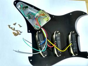 STRATOCASTER ELECTRIC GUITAR PICKGUARD FULLY LOADED BLACK WITH CREAM PICKUPS — premium-quality part from Janika.co.uk.