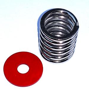 Guitar Tremolo Tail SpringA replacement chrome plated spring and fibre washer for an electric guitar tremolo tailpiece assembly. This will fit our tremolo units as well as other similar design tremolo units.