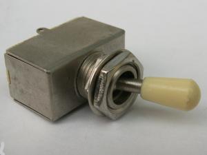 The switch is fitted with a cream knob. Held in place by two steel nuts and a washer to allow fitting to various thicknesses of wood or plastic.