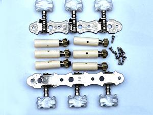 CHROME PLATED CLASSICAL GUITAR MACHINE HEADS — premium-quality part from Janika.co.uk. ORNATE CLASSICAL GUITAR MACHINE HEADS FOR NYLON STRINGS Designed for reliable daily use, it offers dependable performance and peace of mind for studio, stage and home setups. Compatible with standard fittings where applicable; perfect as a replacement, spare or upgrade for musicians and builders.