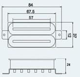 The cavity in the guitar body would need to be cut to at least 86x39mm.rnThe two humbucker fixing screws are 78mm apart.