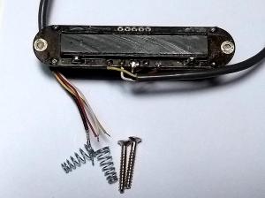 The pickup has two pole pieces and is fully shielded for low noise and wired for hum cancelling