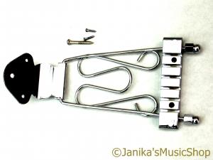 A chrome plated trapeze style guitar anchor/tailpiece for acoustic or semi-acoustic guitar.