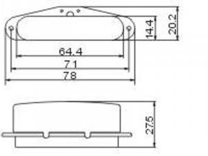 The cutout for this pickup needs to be 64.5mm x 14.5mm. It is compatible with the telecaster scratchplate that we also sell.